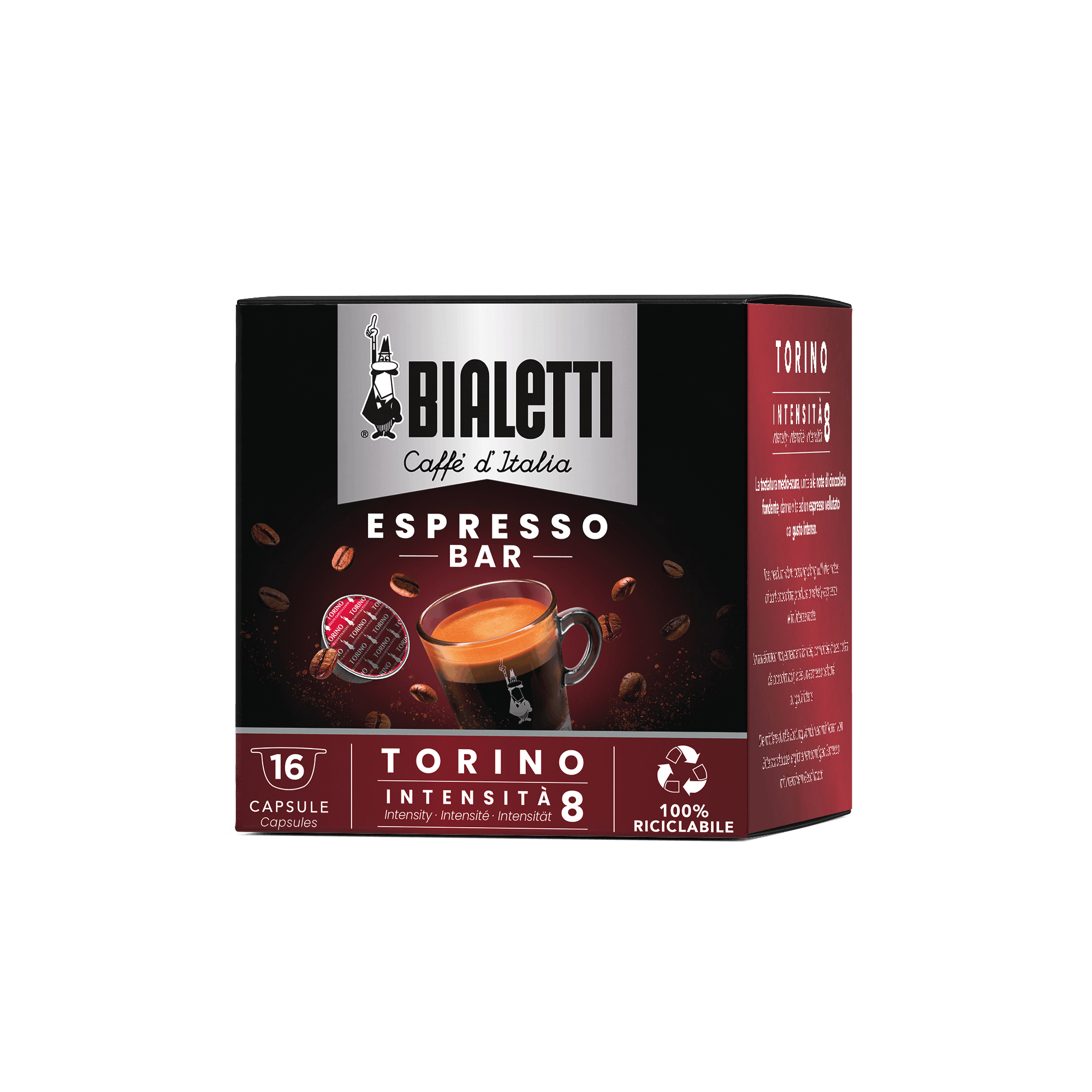 Miscela: TORINO - è un caffè espresso intenso, bilanciato dall’aroma delicato del cioccolato. Infatti Torino, città che da sempre vanta una nobile tradizione cioccolatiera trasferì tutti quei profumi e quei sentori tipici del cioccolato al suo caffè, regalando una miscela unica dal corpo vellutato.