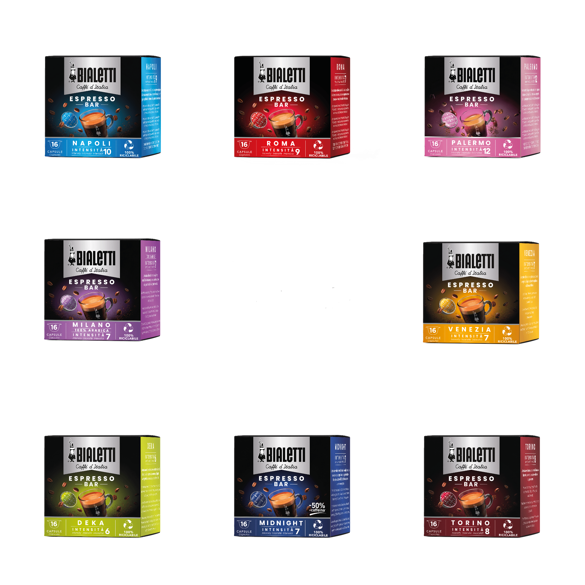 Miscela: MILANO - è un caffè espresso leggero e delicato. Grazie alle sue pregiate origini 100% Arabica e alle sue note di fiori e frutta secca regala un gusto morbido e dalla forte intensità aromatica, perfetto per chi beve più caffè al giorno.