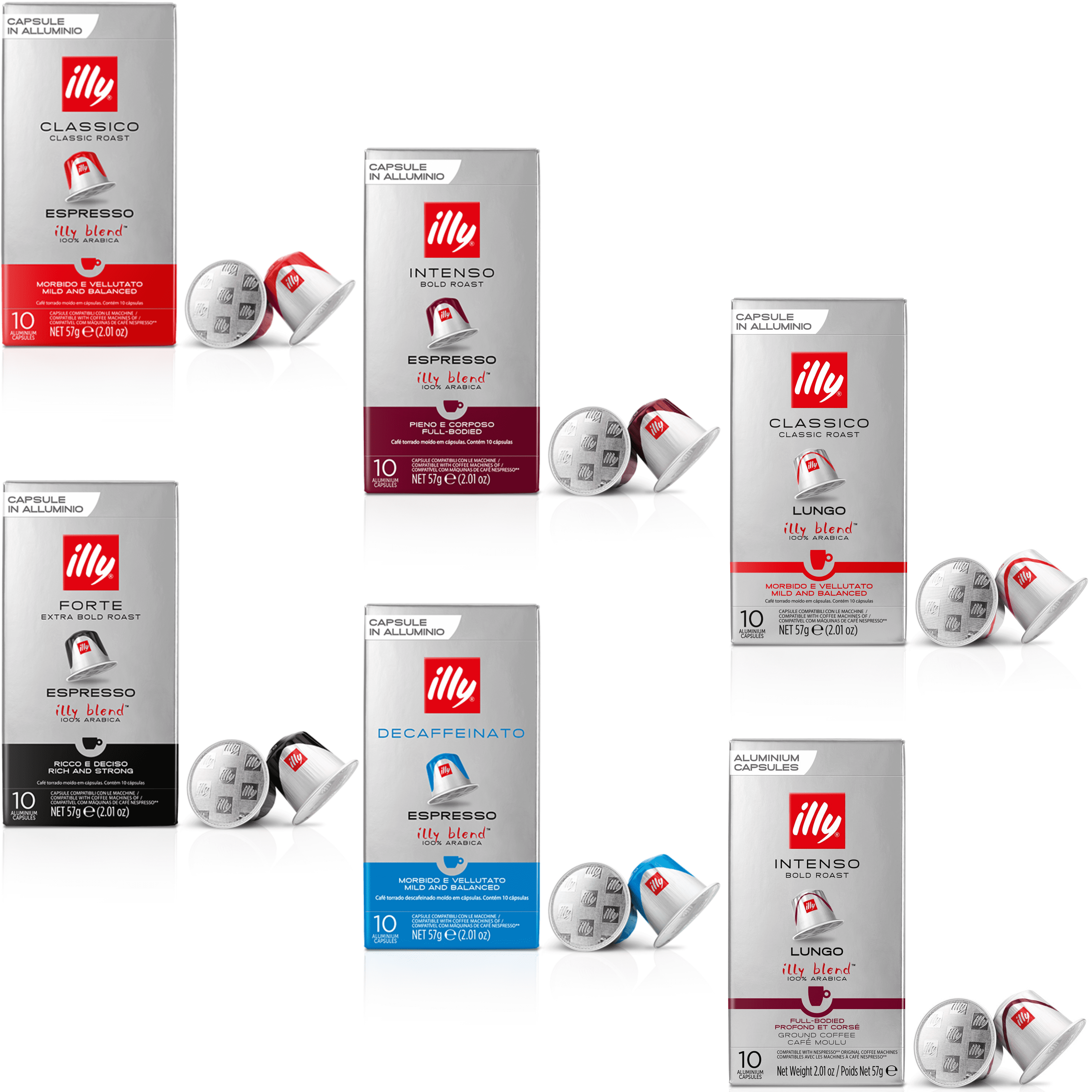 30 confezioni da 10 capsule di Caffè illy per sistema Nespresso®* Gusti assortiti a vostra scelta tra i seguenti tipi di tostatura: