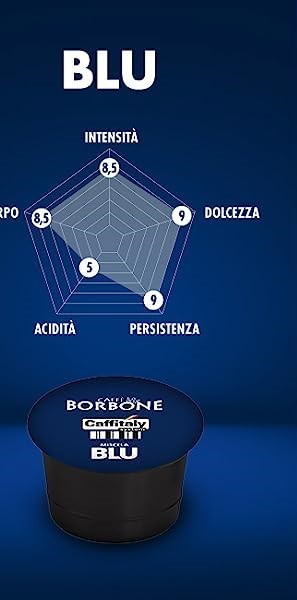- Miscela Blu - Tutto il piacere dell’espresso napoletano come al bar, anche a casa, con le Capsule Originali Caffitaly®* declinate nella miscela Blu Caffè Borbone. Miscela Blu, equilibrata e corposa, ottenuta dalla selezione di miscele per un equilibrio perfetto tra corpo, persistenza e dolcezza. La miscela Blu si caratterizza per il suo sapore nobile, il carattere vigoroso e l’aroma intenso.