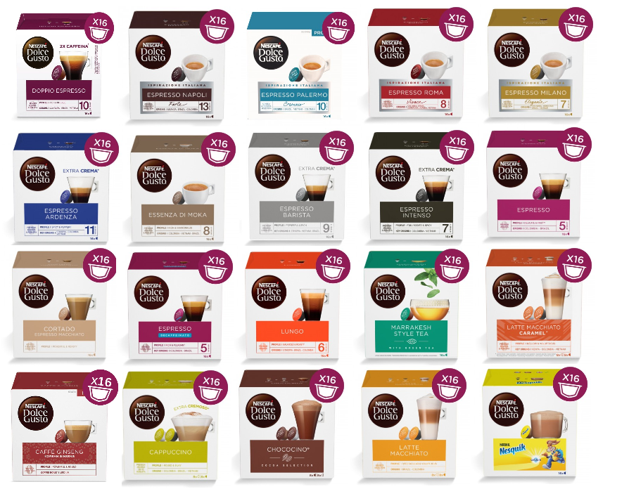 Se è la prima volta che provi Dolce Gusto, andare in un supermercato o in un punto vendita può essere utile per scoprire i gusti e capire quale ti piace di più. Puoi scegliere tra le classiche miscele espresso, cappuccino, chococino o anche le varianti fredde.