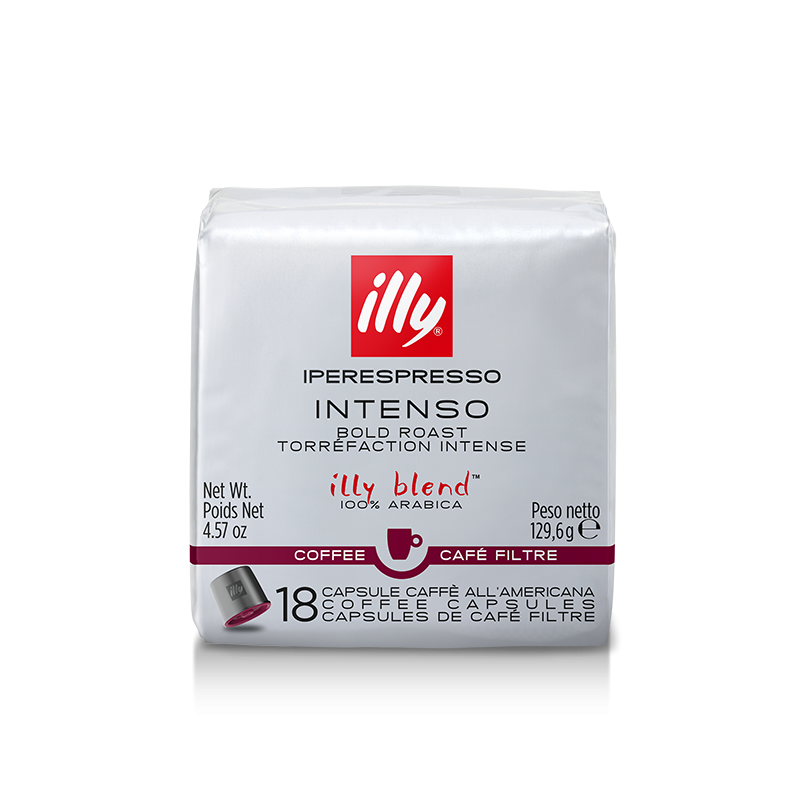 Caffè All'Americana Intenso Le nuove capsule Iperespresso caffè all’americana ti consentono di preparare un’ottima tazza di caffè all’americana con il blend illy, utilizzando una macchina Iperespresso Espresso&Coffee. Caratterizzato da leggera amarezza e corpo consistente, il gusto INTENSO dell’unico blend illy 100% Arabica esprime avvolgenti note di cacao e frutta secca, ideale per gli amanti di un gusto pieno e corposo.