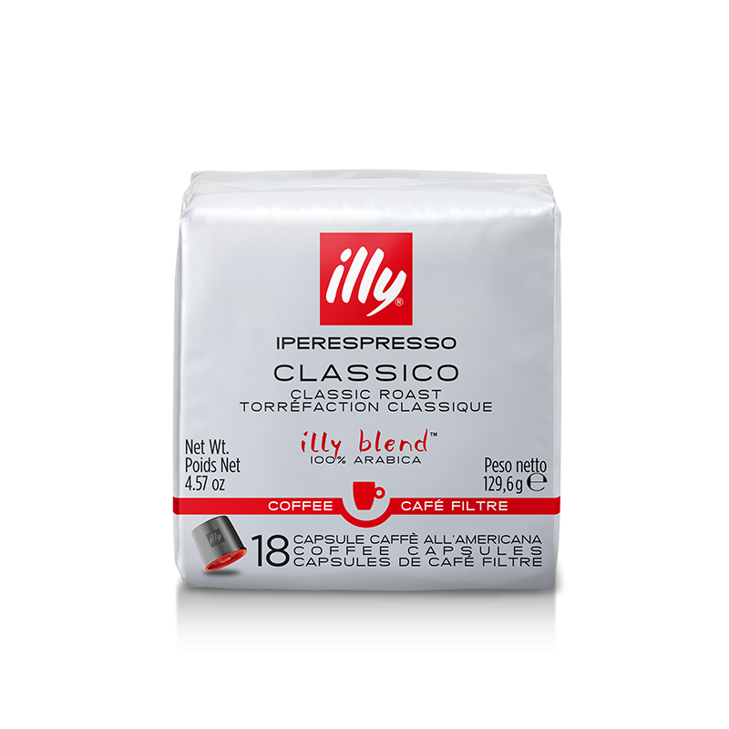 Caffè All'Americana Classico Le nuove capsule Iperespresso caffè all’americana ti permettono di preparare un’ottima tazza di caffè all’americana con il blend illy, utilizzando una macchina Iperespresso Espresso&Coffee.La sfumatura di gusto CLASSICO dell’unico illy blend 100% arabica esprime una nota dolce e fiorita che si unisce a sentori di pan tostato, caramello e cioccolato. Per chi preferisce una tazzina di caffè dal gusto morbido e vellutato.